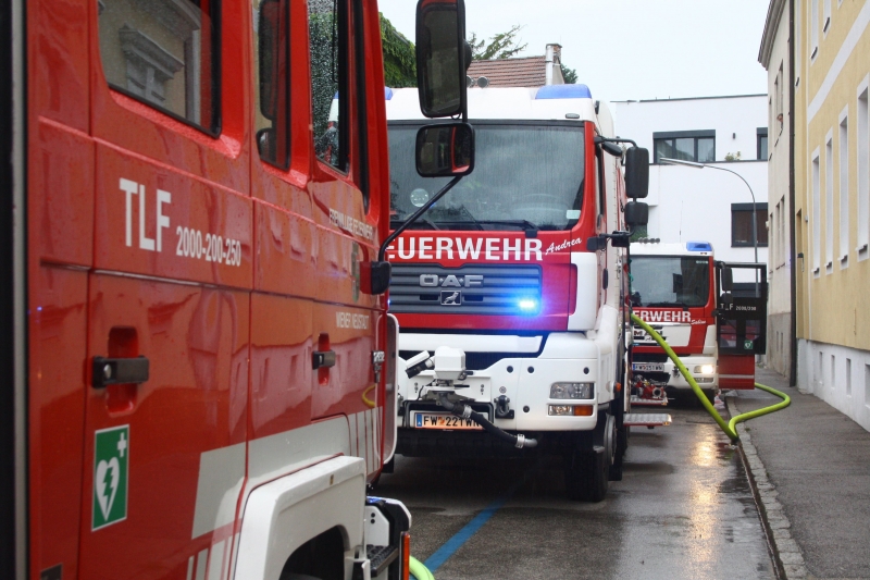 Der Disponent löste um 15:50 Uhr den Hausalarm aus und sofort machte sich ein Tanklöschfahrzeug mit der Hausmannschaft auf den Weg zum nahe gelegenen Einsatzort. Gleichzeitig wurden die Feuerwehrkameraden von zu Hause über Pager zur Feuerwehr geholt. Minütlich rückten Fahrzeuge zur Purgleitnergasse aus.