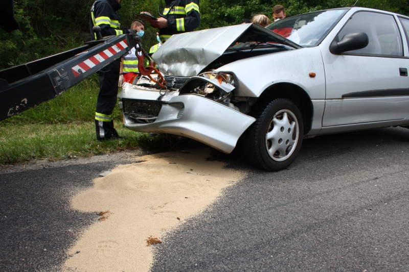 Die Feuerwehr führte die Fahrzeugbergung durch und musste geringe Mengen auslaufendes Betriebsmittel binden.