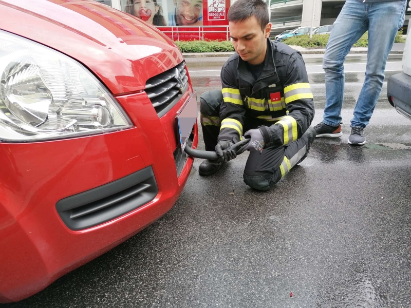 Aus bislang unbekannter Ursache fuhr ein Pkw auf einen anderen auf. Dabei verhakte sich die Anhängekupplung des vorderen Fahrzeuges derart, dass die Feuerwehr anrücken musste. Die Kameraden demontierten die Anhängekupplung und befreiten die beiden Fahrzeuge aus ihrer "Umklammerung".