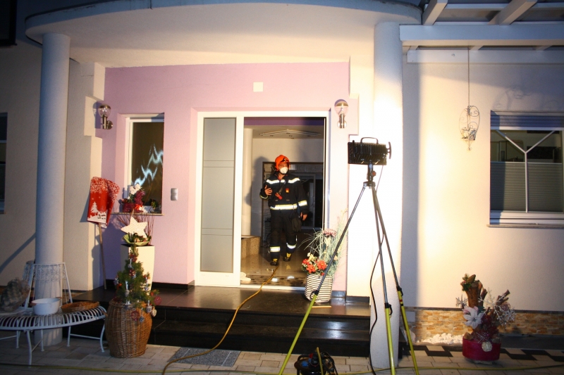 Gerade als sich die fünfköpfige Familie zum Festtagsessen zusammen setzen wollte, bemerkten die Familienangehörigen einen beißenden Brandgeruch. Bei der Nachschau im Keller entdeckte der 47 jährige Familienvater den Brand in der Küche im Keller. Kochgut hatte sich am heißen Herd entzunden und der Brand breitete sich bereits auf die Kücheneinrichtung aus. Geistesgegenwärtig konnte der Vater den Brand mit einem Wasserschlauch unter Kontrolle bringen, während die Mutter die Feuerwehr rief. Die Kinder konnten sich noch selbst aus dem schnell ausbreitenden Rauch im Einfamilienhaus retten, standen jedoch bei Eintreffen der Feuerwehr teilweise ohne Socken und Schuhe im Freien.