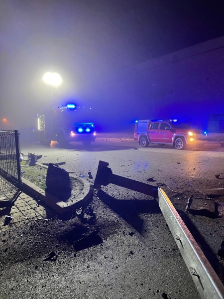 Die Nachtbereitschaft rückte mit einem Vorausrüstfahrzeug und einem schweren Rüstfahrzeug aus und sicherte die Unfallstelle ab. Nach der Unfallaufnahme durch die Polizei wurde das Fahrzeug mittels Ladekran auf die Räder gestellt, die defekten Fensterscheiben des Autos gesichert und auf dem Parkplatz abgestellt. Einer der ausgerissenen Steher der Werbetafel musste von der Feuerwehr von der Parkplatzeinfahrt zur Seite verhoben werden. Das Fahrzeugwrack wird durch ein gewerbliches Unternehmen in weiterer Folge abgeschleppt.