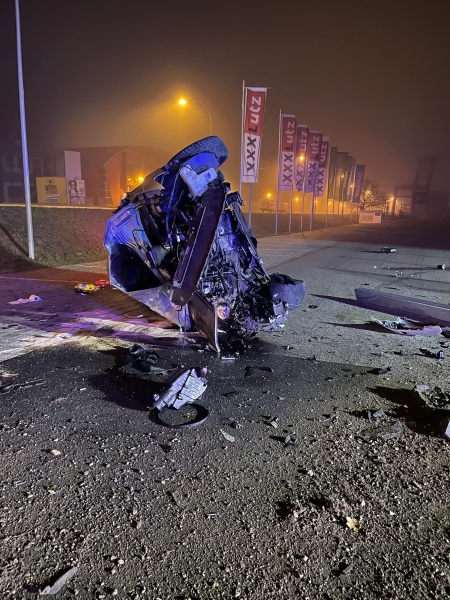 Aus bislang unbekannter Ursache kam in der Nacht zum 18.11. ein Pkw von der Fischauerstraße auf Höhe des Parkplatzes der Möbelhausketten XXXLutz, Möbelix und mömax von der Fahrbahn ab, touchierte die Werbetafel und überschlug sich über die Böschung und blieb auf ebendiesem seitlich zum Liegen. Der Motorblock hing nur noch am Getriebestrang und Betriebsmittel sind im vollen Umfang ausgeflossen.
