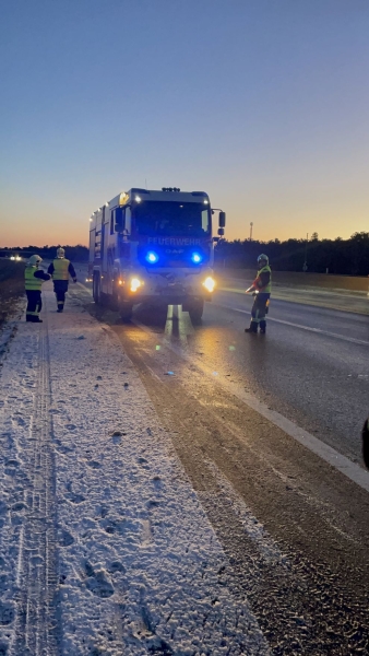 Die Freiwillige Feuerwehr führte nach der ergebnislosen Personensuche die Bergung des schwer beschädigten Unfallfahrzeuges durch. Der BMW erlitt einen Totalschaden. Das Fahrzeug wurde von der Autobahn verbracht und im Bereich einer Betriebsumkehr abgestellt.