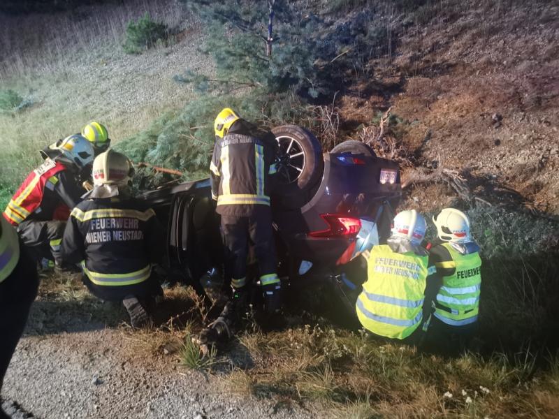 Nachdem eine 19-Jährige am 11. September auf dem Weg zur Arbeit auf der Nordspange bei Wiener Neustadt mit ihrem Auto von der Fahrbahn abgekommen war, musste sie von den Feuerwehren Wiener Neustadt, Theresienfeld und Felixdorf aus dem am Dach liegenden Fahrzeug gerettet werden. Sie wurde bei dem Fahrzeugüberschlag unbestimmten Grades verletzt und musste vor Ort notärztlich versorgt werden.
