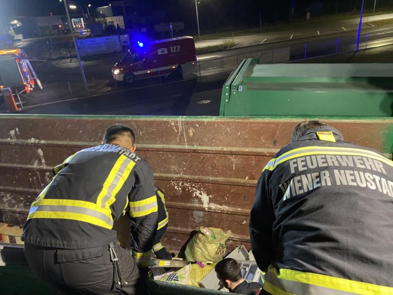 Über eine Steckleiter kletterten drei Mitglieder der Freiwilligen Feuerwehr Wiener Neustadt in den Sperrmüll Container und konnten zwei Katzen einfangen. Mit der Transportbox wurden die Katzen aus dem Container gerettet. Nach dem Einsatz wurden die Kätzchen dem Tierschutzverein Wiener Neustadt übergeben.