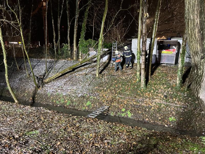 In der Nacht zum 23. Dezember rückte die Nachtbereitschaft dann zu einem Wassereintritt durch Dach zum Flugfeldgürtel aus. Im Bereich eines Fensters war offenbar durch eine Undichtheit in der Dachhaut Wasser eingetreten.