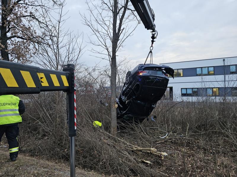 Der Autofahrer kam auf Höhe des Gewerbegebiets an der B54 stadtauswärts von der Straße ab. Der BMW überschlug sich dabei und landete, am Dach liegend, im dichten Bewuchs neben der Fahrbahn. Ein zufällig vorbei kommender Krankentransporter aktivierte die Rettungskette und half dem Lenker, sich selbstständig aus dem Unfallfahrzeug zu befreien.