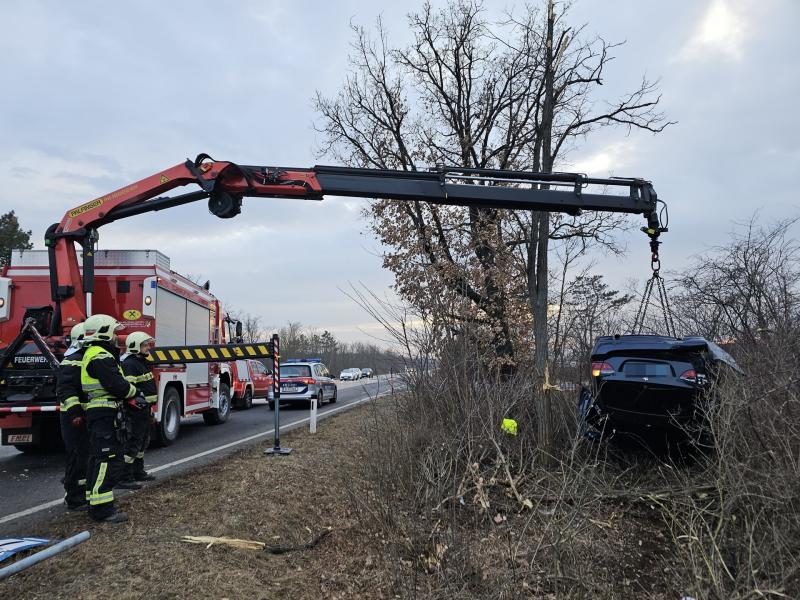 Beim Eintreffen der Feuerwehr war der Lenker bereits in Obhut des Rettungsdienstes. Er konnte nach einer Erstversorgung in häusliche Pflege entlassen werden. Die Freiwillige Feuerwehr Wiener Neustadt führte unterdessen die Fahrzeugbergung durch. Das Unfallfahrzeug wurde mit einem Kran aus dem Gestrüpp gehoben und auf einer nahen Parkmöglichkeit gesichert abgestellt.