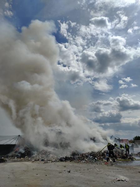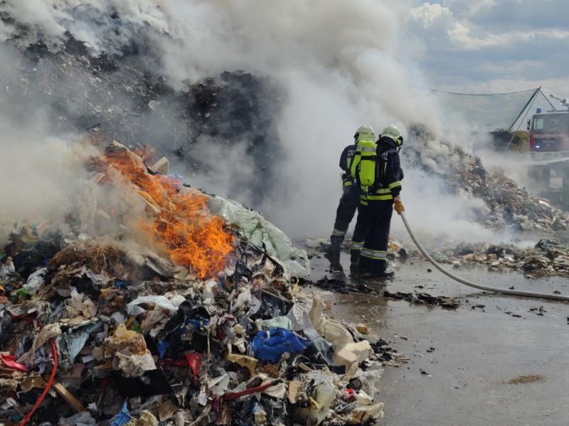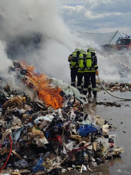Durch den umfassenden Löschangriff, welcher von mehreren Atemschutztrupps sowie der Drehleiter aus durchgeführt wurde, konnte der Brand langsam unter Kontrolle gebracht werden. Um die zahlreichen Glutnester im Müllberg abzulöschen, musste der 400 m³ große Müllberg jedoch mühsam mittels zweier Radlader auseinandergezogen und langwierig abgelöscht werden.