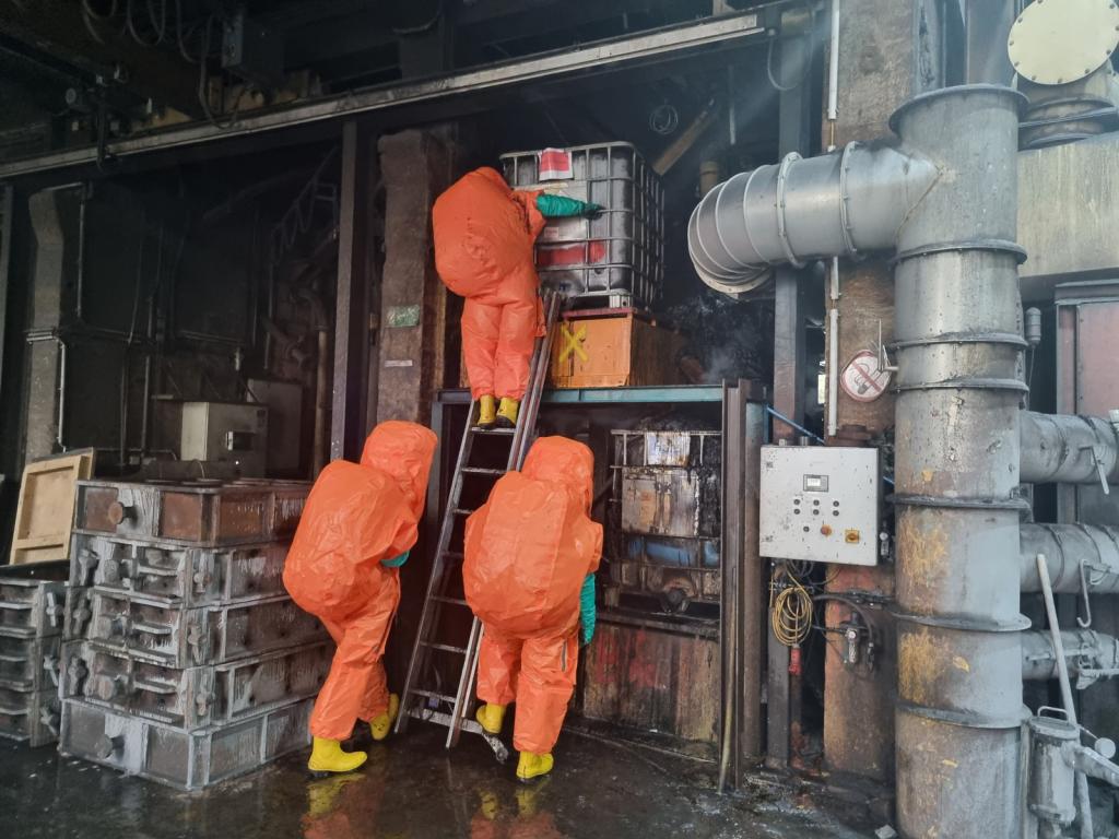Der Schadstoffzug Neunkirchen konnte in Zusammenarbeit mit den Kräften aus Bad Erlach und Wiener Neustadt nach den Löscharbeiten die betroffenen Behälter voneinander trennen, abdichten und mit einem Gabelstapler ins Freie bringen, wo diese von einer Fachfirma in weiterer Folge entsorgt wurden. Ein Behälter wurde vorsorglich mit einem Schaumteppich und einem speziellen Löschsand in einem Container überdeckt, um weitere Reaktionen zu unterbinden.