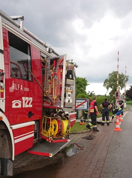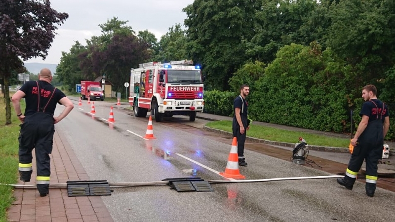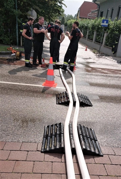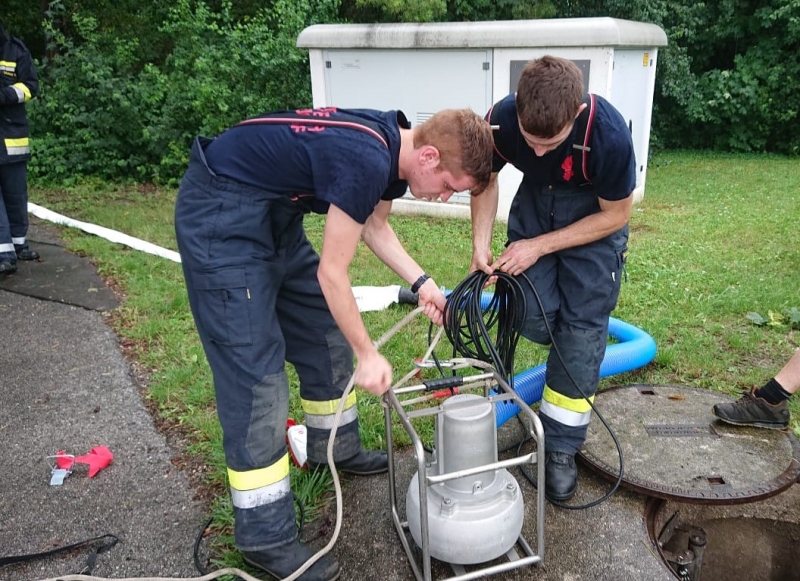 Durch die gefallenen Regenmengen standen mehrere Keller unter Wasser. Während der Auspumparbeiten wurde festgestellt, dass der Kanal die enormen Wassermengen nicht ableiten konnte und dadurch überlastet war. Nach Verständigung des Wassermeisters der Gemeinde Katzelsdorf wurden gemeinsam weitere Maßnahmen gesetzt.