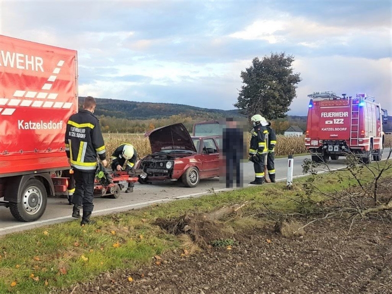 Nach der Erstversorgung wurde der Verletzte mit dem Hubschrauber zur weiteren Behandlung ins Krankenhaus geflogen. Nach der Behördlichen Aufnahme durch die Polizei wurde der verunfallte PKW von der FF Katzelsdorf mit Hilfe des Rüstlöschfahrzeuges aus dem Feld gezogen und anschließend zur Sicherstellung auf den Abstellplatz der Gemeinde Katzelsdorf verbracht.