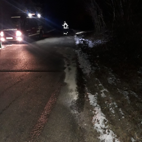 Zu einen Schadstoffeinsatz zur Beseitigung einer Benzin- bzw. Ölspur wurden die Mitglieder der FF Frohsdorf am Montagabend dem 11.01.2021 um ca. 18:15 Uhr telefonisch gerufen. Zwei Kameraden fuhren mit dem MTF zum Einsatzort in der Rosentalerstrasse.