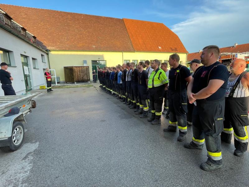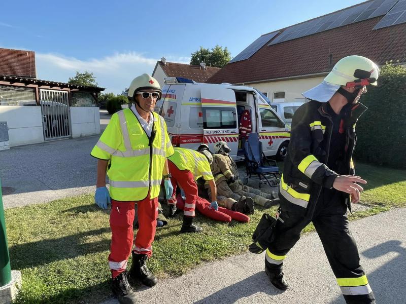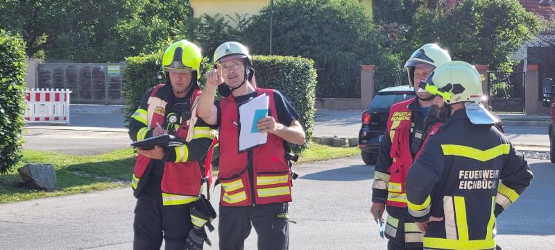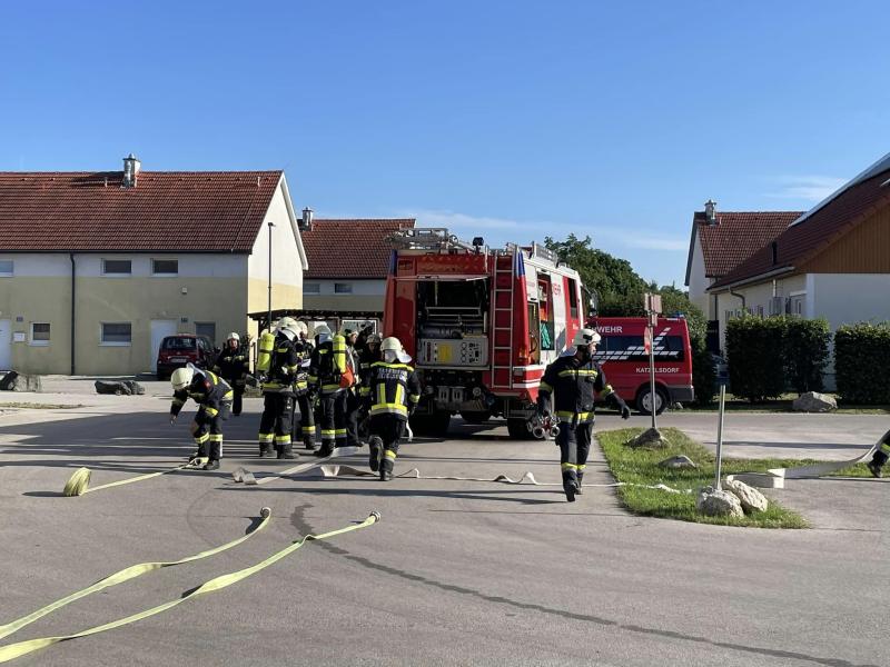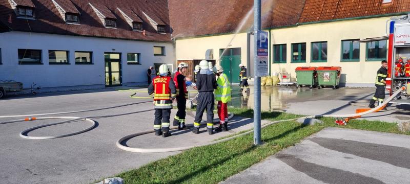 HBI Christian Wagenhofer hatte für die drei Feuerwehren: Katzelsdorf, Eichbüchl und Frohsdorf ein realistisches Szenario vorbereitet die bei dieser Übung und hochsommerlichen Temperaturen jeden Teilnehmer forderten.