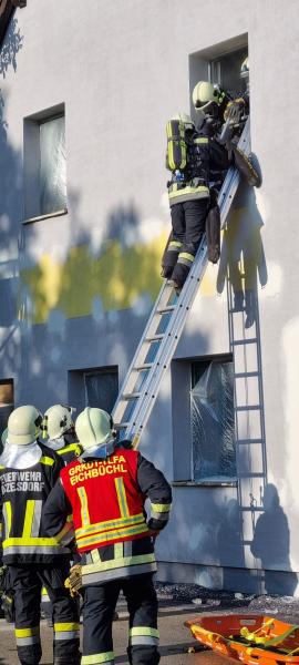 Eine Person musste mittels Leiterrettung vom Atemschutztrupp gerettet werden.