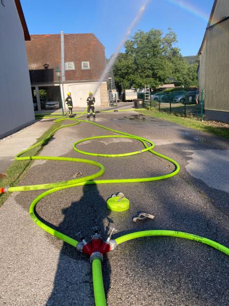 Weiters als Erschwerung war vorgegeben das das Hydranten Netz nicht verwendet werden konnte und so die Wasserversorgung vom ca. 180 Meter entfernten Mühlbaches hergestellt werden musste.