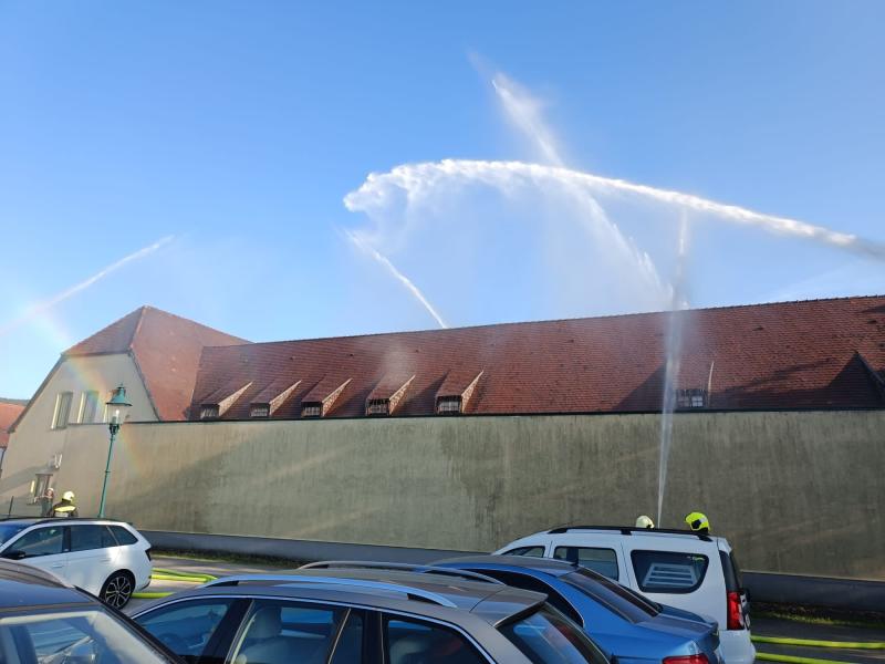 In der Zwischenzeit wurde der Brandschutz, um ein Übergreifen auf weitere Flächen des Dachstuhles zu verhindern, von den eingesetzten Mannschaften durchgeführt.