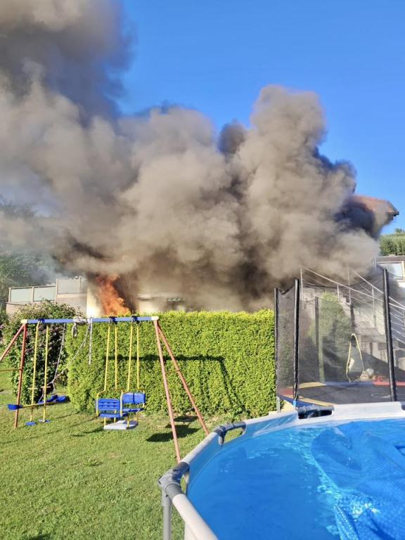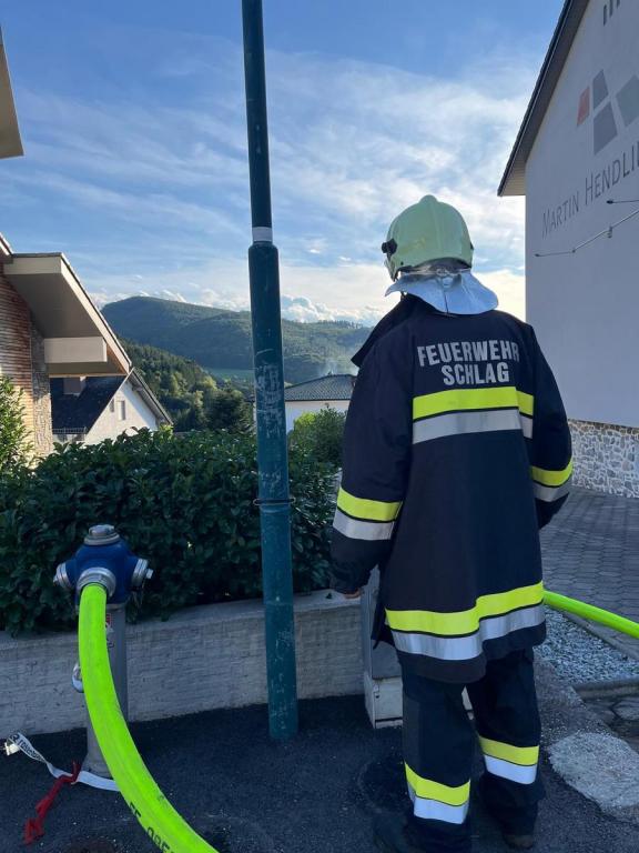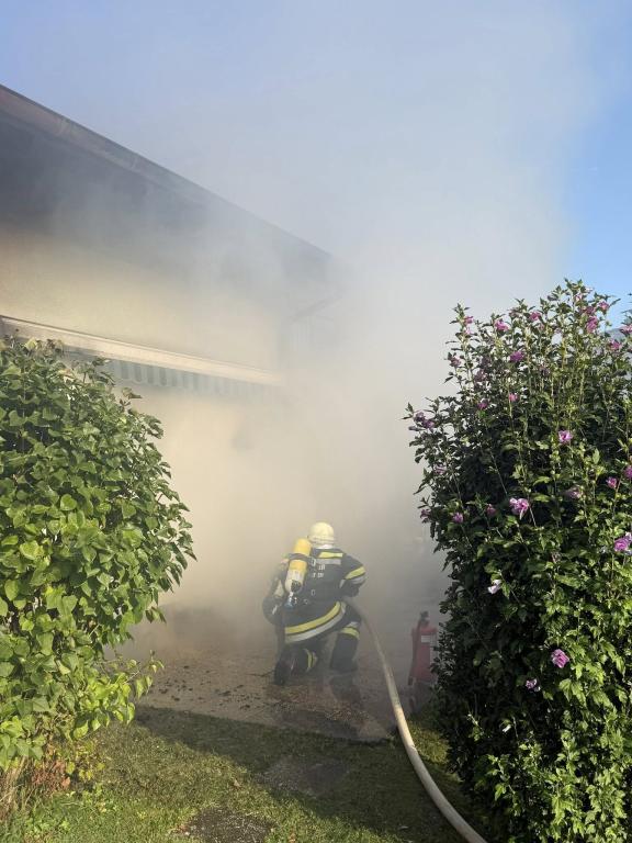 Durch das rasche Eingreifen der Nachbarn mithilfe einer Tauchpumpe und Wasser aus dem Swimmingpool konnte das Übergreifen des Feuers auf den Dachstuhl verhindert werden.