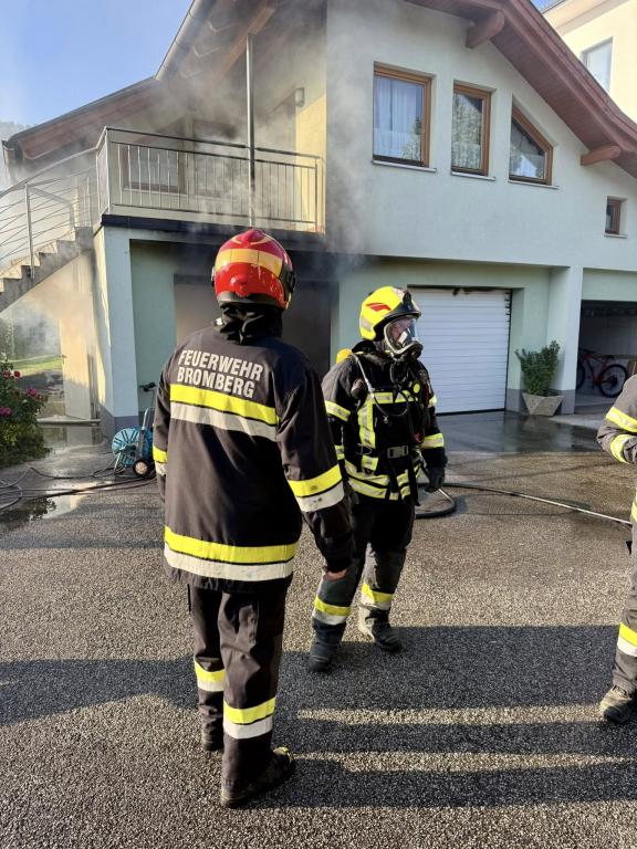 Bereits drei Minuten nach der Alarmierung trafen die ersten Einsatzkräfte der Feuerwehr Bromberg – aufgrund der unmittelbaren Nähe zum Einsatzort – am Brandobjekt ein. Vor Ort stellte sich heraus, dass es sich um einen Brand in einer Garage mit angebautem Obergeschoßraum handelte. Das angrenzende Wohnhaus war glücklicherweise nicht betroffen.