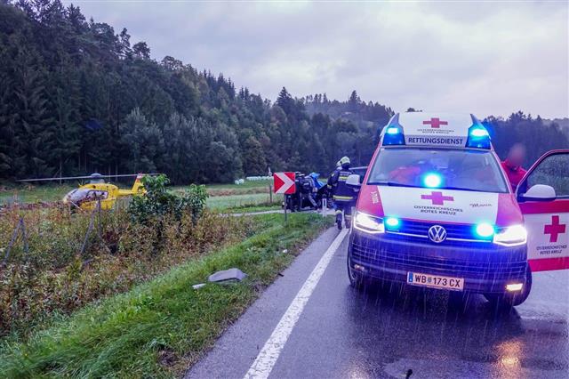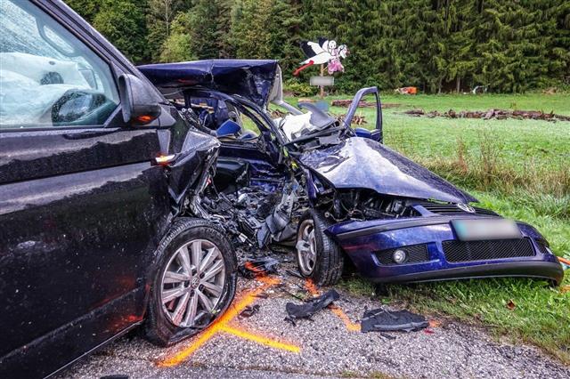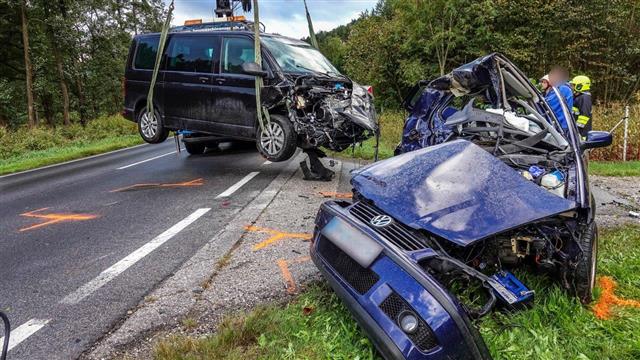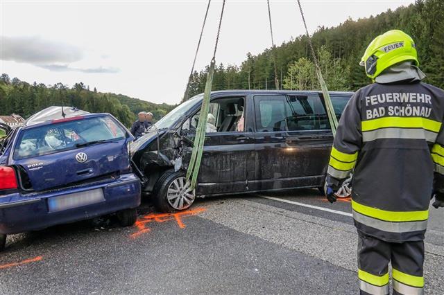 Gegen 6:45 Uhr kam es am 24.09.2018 auf der B55 zwischen Bad Schönau und Kirchschlag zu einem folgenschweren Verkehrsunfall. Aus derzeit noch unbekannter Ursache kam es auf nasser Fahrbahn zu einem Zusammenstoß zwischen einem Pkw und einem Kleinbus.