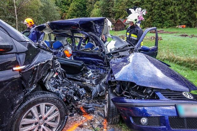 Durch die Wucht des seitlich – frontalen Zusammenstoßes der beiden Fahrzeuge wurde der Kleinwagen dermaßen deformiert, dass der Notarzt des NAH C16 nur mehr den Tod der Lenkerin feststellen konnte. Der Lenker des Kleinbusses kam mit leichten Verletzungen davon.
