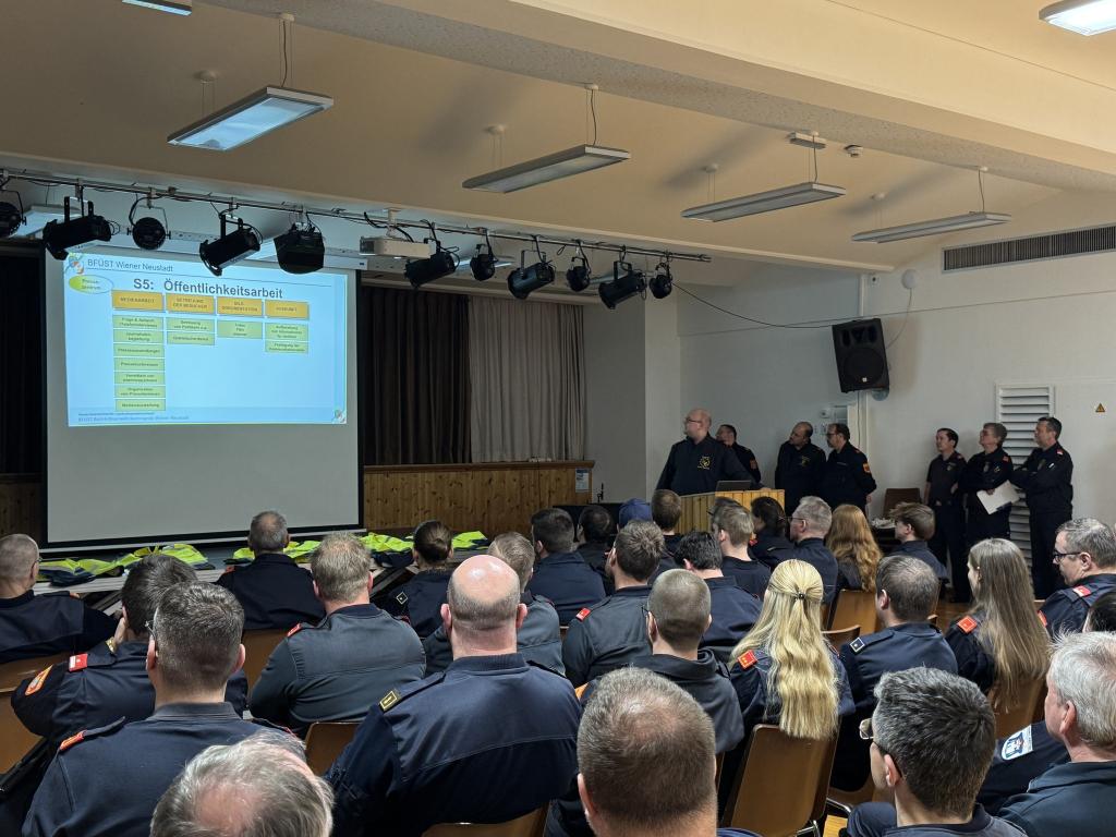 Bezirksfeuerwehrkommandant OBR Karl-Heinz Greiner konnte 30 Mitglieder aus dem ganzen Bezirk begrüßen. Weiters konnte der den BFKDT-Stv. vom Bezirk Mödling, BR Christian Giwiser, begrüßen.
