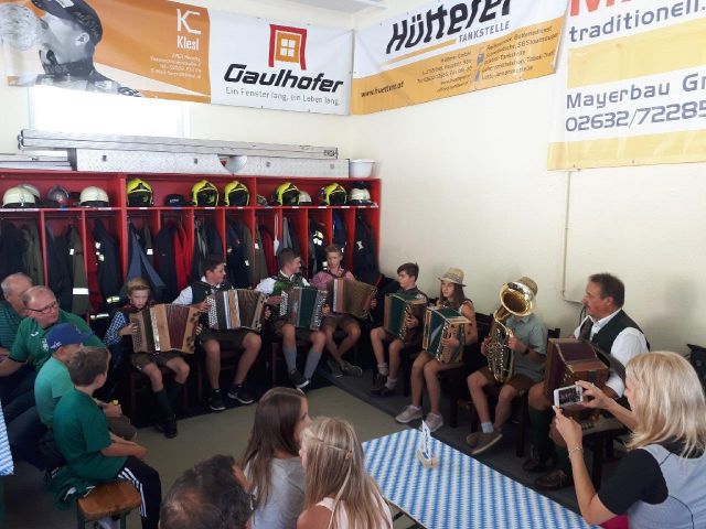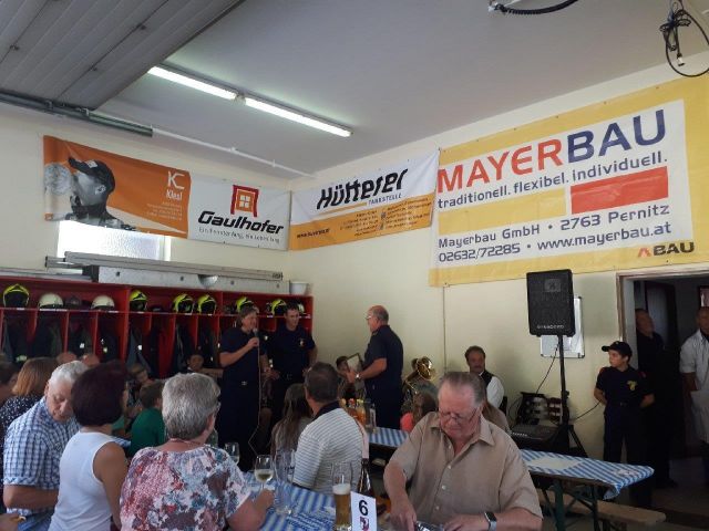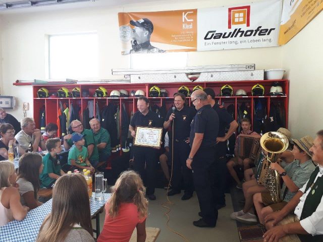 Am Nachmittag sorgten junge Musiker der Musikschule "oberes Piestingtal" für ausgezeichnete Stimmung und begeisterten die Gäste. Im Zuge des Festes konnte OBI Robert Klesl den langjährigen Fahrmeister Martin Weber zu seinem 50. Geburtstag gratulieren und sich bei ihm für sein großes Engagement bedanken. Bürgermeister Michael Zehetner schloss sich der Gratulation an und bedankte sich beim neu gewählten Kommando OBI Robert Klesl und BI Roland Hütterer für ihre Tätigkeiten."