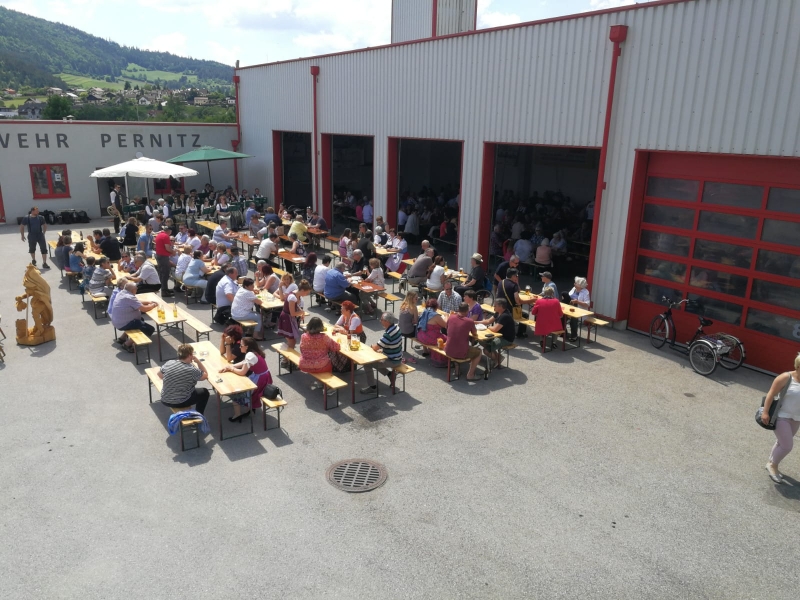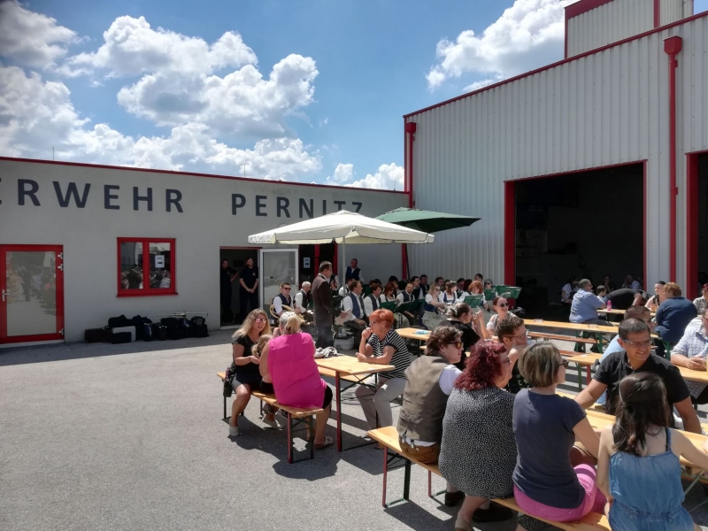 Die Musikkapelle Pernitz gestaltete diesen Frühschoppen musikalisch und in der Weinkost konnten die besten Weine verkostet werden. Das Highlight des Frühschoppens bildete die Abzeichenübergabe durch Kommandant Josef Panzenböck an die 7 Mitglieder, welche mitte Mai das Leistungsabzeichen Ausbildungsprüfung Technischer Einsatz in Bronze erringen konnten, hier gratulierten neben Bgm. Hubert Postiasi auch Abschnittskommandant Hermann Gamsjäger.