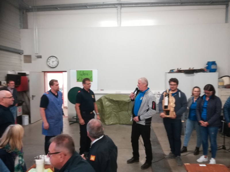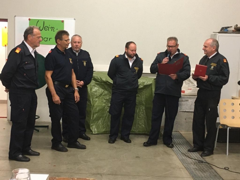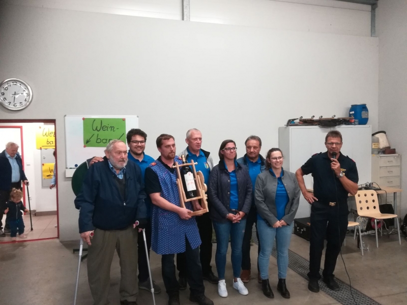Den Höhepunkt bildeten 2 Ehrungen. Die Musikkapelle Pernitz bedankte sich bei der Feuerwehr Pernitz in Form eines selbstgemachten Weinausgießers und einer Flasche Etrich für die Hilfe beim heurigen Jubiläumsfest der Musikkapelle Pernitz. Hier übernahmen die Mitglieder der Feuerwehr den Küchendienst.