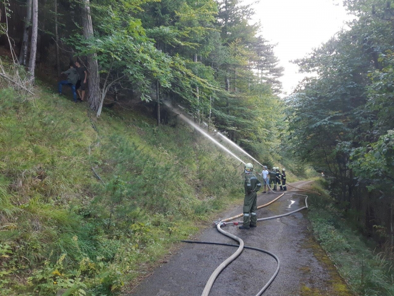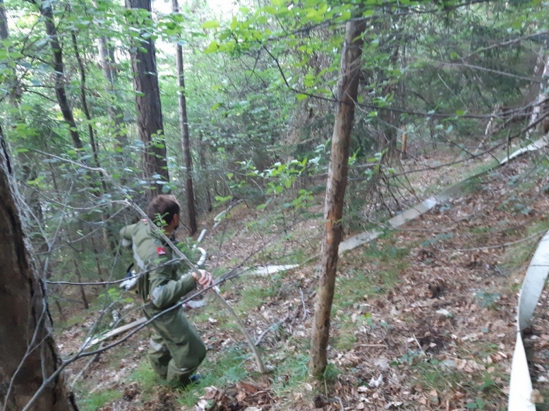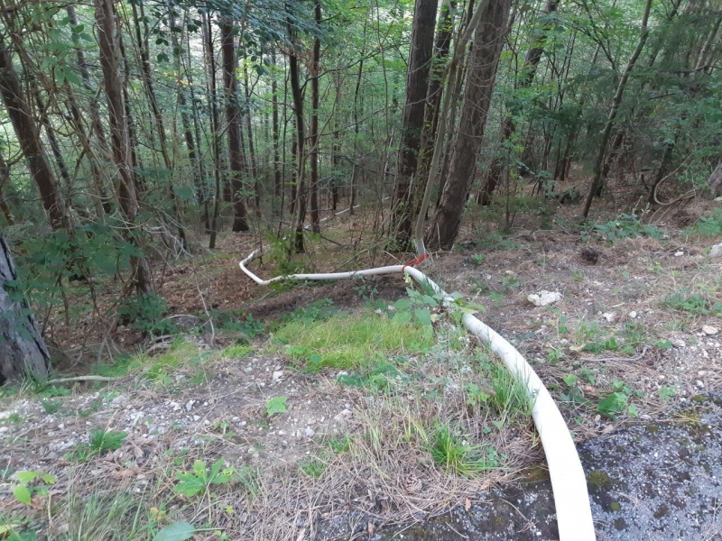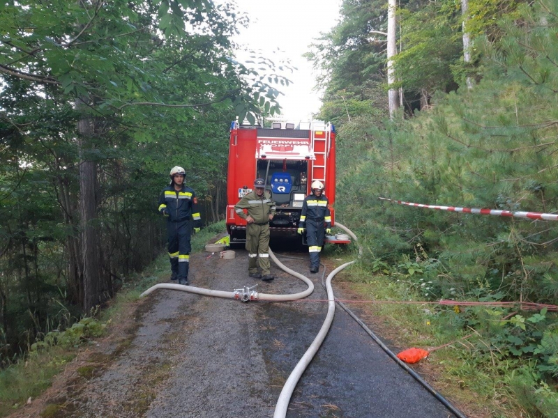Zur Brandbekämpfung wurde eine Versorgungsleitung von der "Piesting" unter der LB21 durch bis zum Forstweg verlegt und Löschwasser zum HLF 3 transportiert.Dabei wurden über 200m Schläuche verlegt und 100 Höhenmeter überwunden.