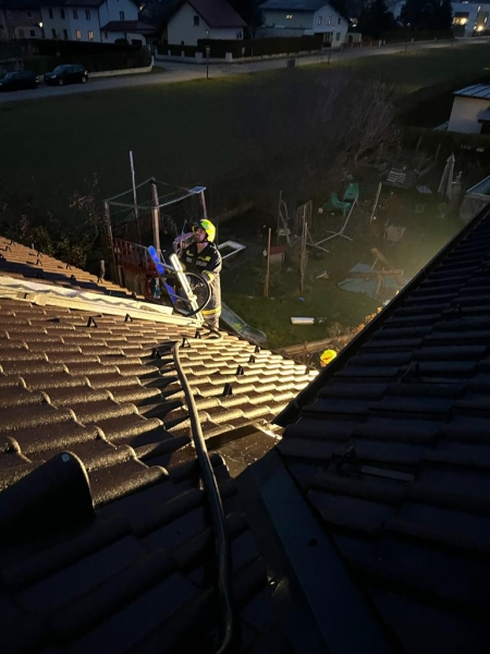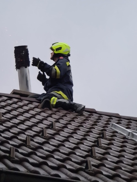 Da der zuständige Rauchfangkehrer telefonisch nicht erreichbar war, wurde über die BAZ Wiener Neustadt ein anderer angefordert. In der Zwischenzeit wurde durch einen Pernitzer Feuerwehrkameraden, der das Rauchfangkehrer Handwerk erlernt hat, begonnen, die Glut im Kamin vorsichtig mit einer Bürste zum Reinigungstürl an der Kaminsohle zu kehren. Nach dem Eintreffen des Rauchfangkehrers aus Wr. Neustadt führte dieser die Arbeiten fort und kontrollierte die nochmals die Räumlichkeiten. Da er Risse feststellte, sprach er ein Heizverbot aus, bis der örtlich zuständige Rauchfangkehrer eine Dichtheitsprüfung durchgeführt hat.