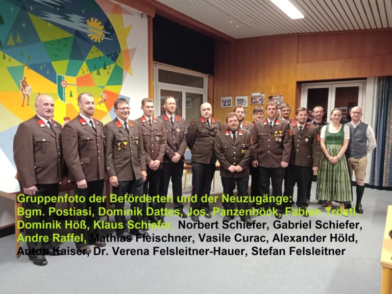 OFM Tröstl Fabian zum Löschmeister, LM Dattes Dominik zum Oberlöschmeister LM Panzenböck Andreas zum Oberlöschmeister, OBM Fleischner Mathias zum Hauptbrandmeister