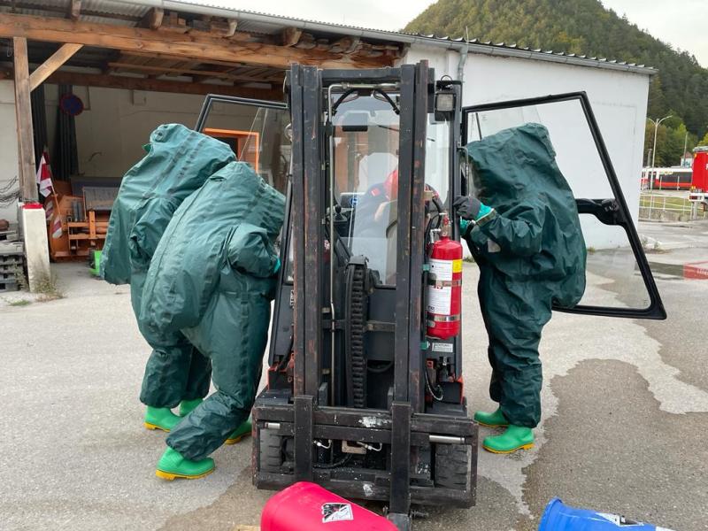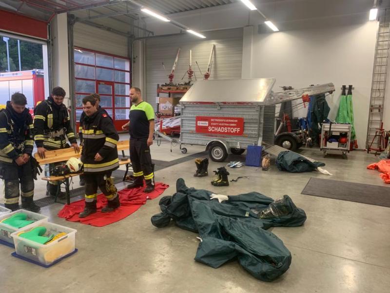 An 4 Stationen wurden Gefahrenguteinsätze unter Zuhilfenahme von Atemschutz und Verwendung von Schutzanzügen der Klasse 2 simuliert. Ausgearbeitet wurde die Übung von ASB für Schadstoff Robert Öhlinger, Stv. SB Peter Neumann und ASB für Atemschutz Andreas Postl. Die Übungsüberwachung nahmen Abschnittskommandant BR Hermann Gamsjäger und BSB für Schadstoff Peter Lenauer vor. Über 54 Kameradinnen und Kameraden aller Feuerwehren des Piestingtals und 6 Teilnehmerinnen und Teilnehmer der Feuerwehrjugend Gutenstein nahmen an dieser sehr herausfordernden und gut organisierten Übung teil und wurden im Umgang mit Schutzanzügen unter Atemschutz über 3 Stunden lang unterwiesen.