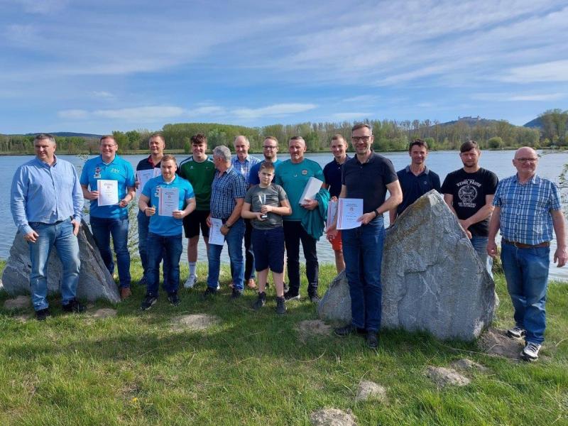 ÖZSV-Präsident Martin Zehetner, Bürgermeister von Mautern Heinrich Brustbauer und Sportwart Dominik Walchshofer konnten die begehrte Trophäe überreichen.