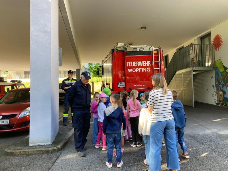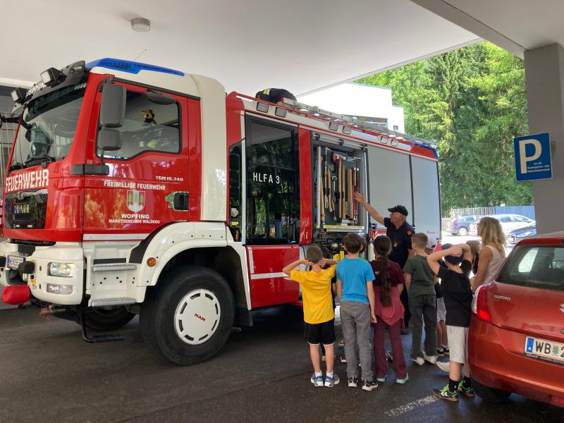Anlass war das Schulprojekt „Gemeinsam Sicher Feuerwehr“. Allen Schülern wurden die Tätigkeiten der Freiwilligen Feuerwehr sowie das Hilfeleistungsfahrzeug 3 präsentiert. Der 3. und 4. Klasse wurde jeweils in einer Unterrichtsstunde beigebracht, wie im Ernstfall ein Notruf abzusetzen ist. Abschließend wurden Frau Direktor Jutta Eichberger 5 Chronikbücher „100 Jahre Freiwillige Feuerwehr Wopfing“ als Geschenk für die Schulbibliothek übergeben.