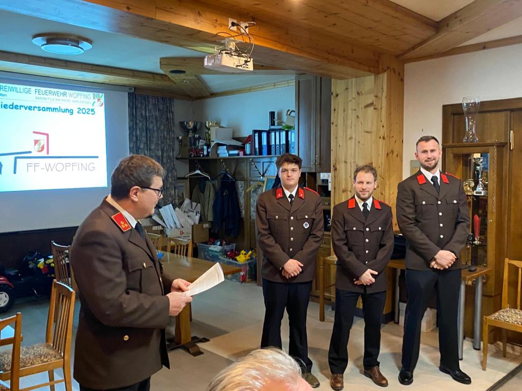 Mitgliederversammlung Freiwillige Feuerwehr Wopfing Am Samstag, den 18. Jänner fand im Gasthaus Moser-Stockreiter die Mitgliederversammlung der Freiwilligen Feuerwehr Wopfing statt. Kommandant HBI Ing. Bernd Steinbrecher konnte neben 37 Mitgliedern auch Bürgermeisterin Katharina Trettler begrüßen.