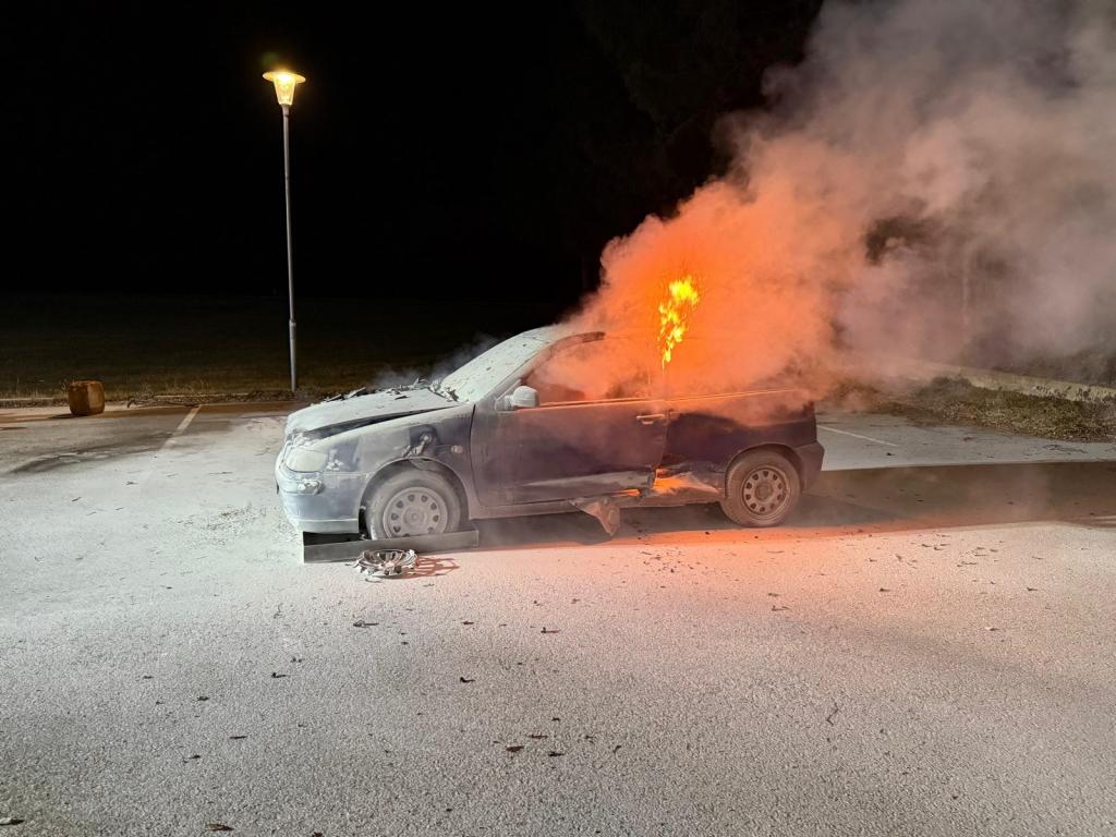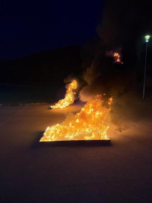 Im Anschluss wurde ein Fahrzeug in Brand gesetzt und mittels HD-Schnellangriffseinrichtung und mit Schaum gelöscht.