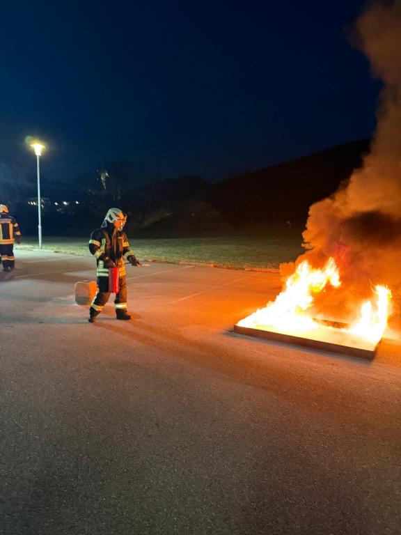 Am Freitag, 21.2.2025 übten die Mitglieder der FF Wopfing das "Löschen eines Fahrzeugbrandes". Zu Beginn wurde die richtige Handhabung der verschiedenen Feuerlöscher wiederholt.