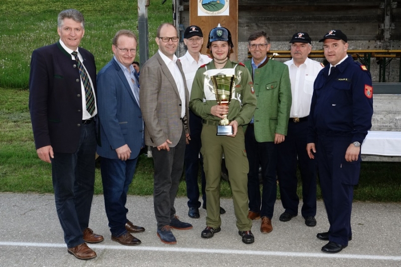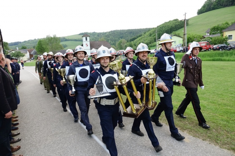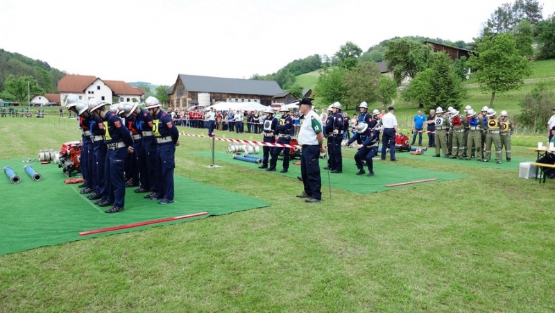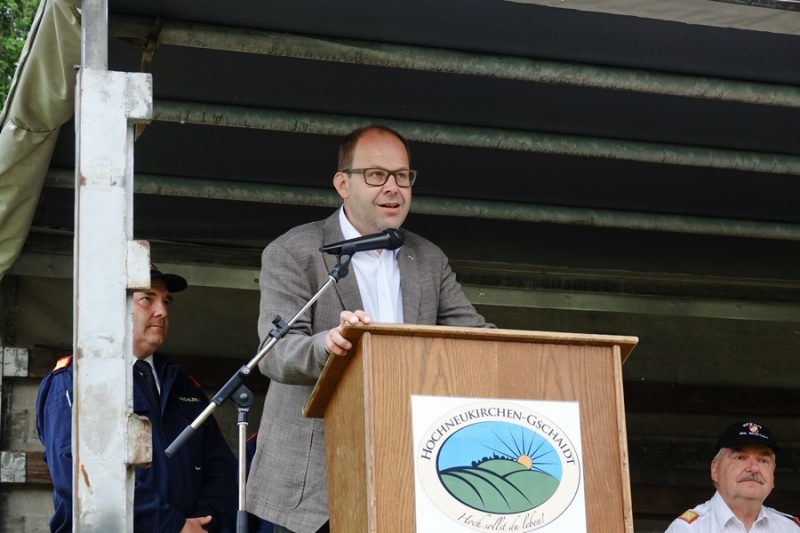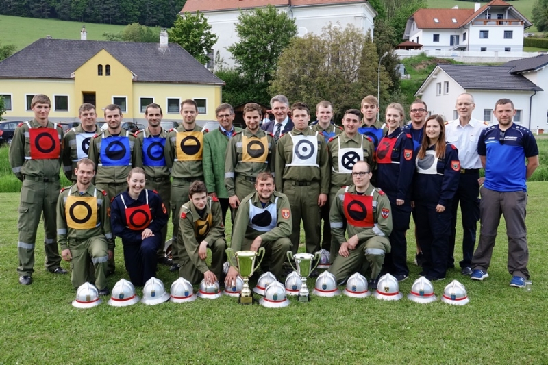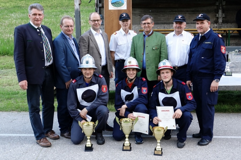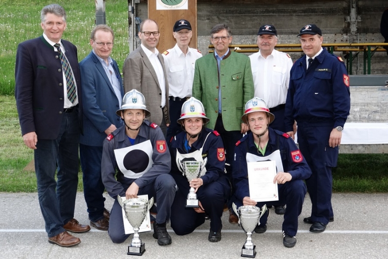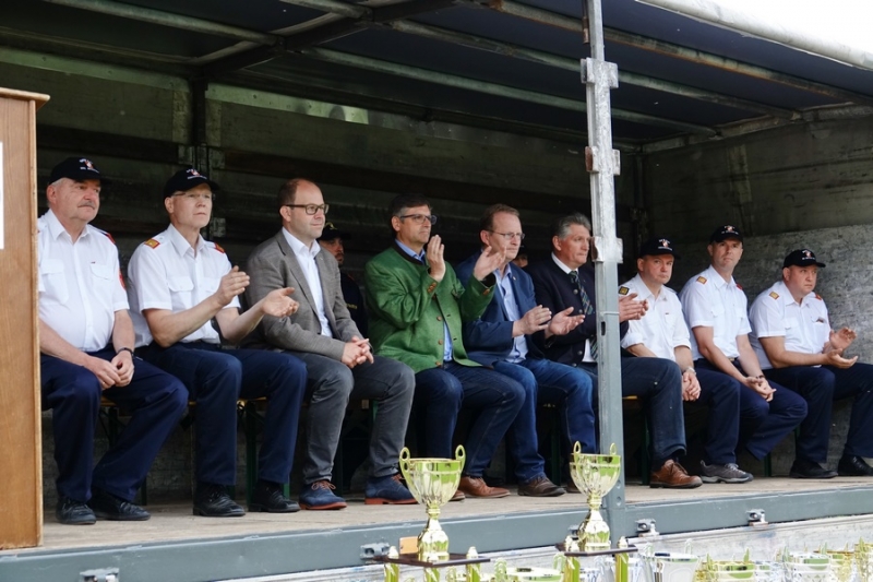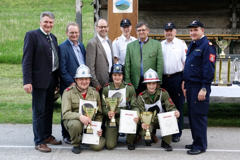 Zur Siegerehrung konnte Abschnittsfeuerwehrkommandant BR Bernhard Pichler den Bürgermeister der Marktgemeinde Hochneukirchen-Gschaidt Ing. Thomas Heissenberger, den Abgeordneten zum NÖ Landtag Ing. Franz Rennhofer die Bürgermeister Josef Freiler (Kirchschlag) und Josef Schrammel (Lichtenegg), den Bezirksfeuerwehrkommandanten OBR Rudolf Freiler, die Abschnittsfeuerwehrkommandanten BR Karl-Heinz Greiner und BR Roland Kleisz, für die Funktionäre des Abschnittes Kirchschlag Abschnittsfeuerwehrkommandant-Stellvertreter ABI Michael Lechner, sowie Feuerwehrarzt Dr. Anton Wanecek begrüßen. Von dem Nachbarbundesland Burgenland konnte Brandrat Pichler aus dem Bezirk Oberpullendorf den Bezirksfeuerwehrkommandant-Stellvertreter BR Kurt Kappel und Abschnittsfeuerwehrkommandant ABI Josef Weber begrüßen. Ein Dank ging an das Team des Roten Kreuzes. Einen Gruß und Dank ging an den Grundbesitzer des Bewerbsplatzes Johann Gamauf für die Möglichkeit der Durchführung der Bewerbe. Einen Gruß gab es auch für den MV Hochneukirchen und den Dank für die musikalische Umrahmung des Bewerbes.
