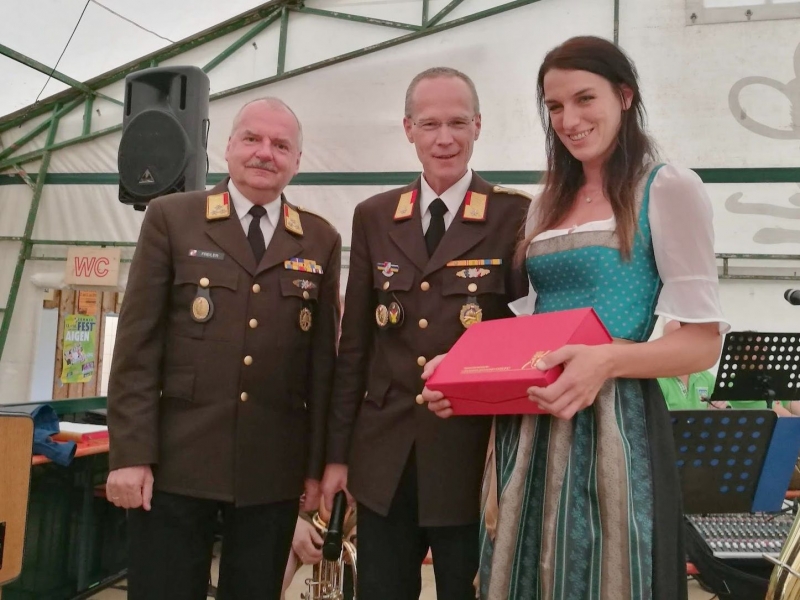 Eine besondere Auszeichnung wurde im Rahmen des Festaktes an Magret Zitterbayer, für die Unterstützung beim medialen Auftritt (Plakate, Logos, etc.) der FF Lichtenegg, verliehen. Sie erhielt die Florianiplakette, die höchste Auszeichnung die ein nicht Feuerwehrmitglied erhalten kann.