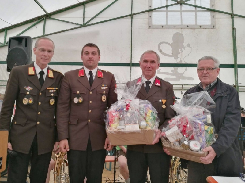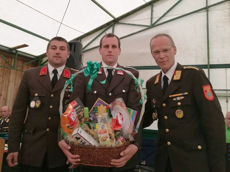 Weiters wurde OLM Peter Schrammel ein Geschenkskorb für seinen unermüdlichen Einsatz im Zuge der Festlichkeiten der Feuerwehr Lichtenegg als Dank übergeben.