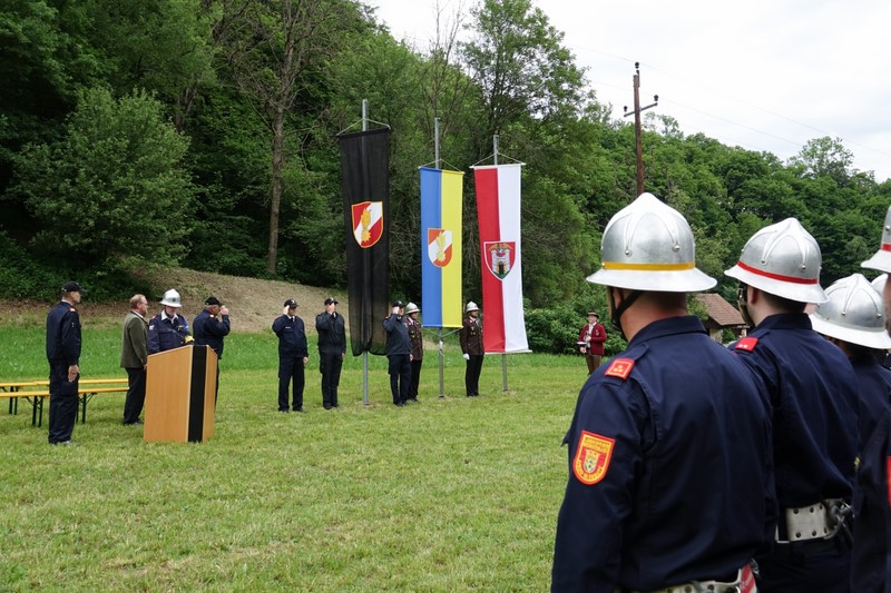 In seiner Rede danke Abschnittskommandant-Stellvertreter ABI Lechner den Teilnehmenden Bewerbsgruppe für die disziplinierte verhalten beim Bewerb. Er erinnerte an den Abschnittsbewerb in Frohsdorf, den Bezirksbewerb in Schwarzenbach und den Landesbewerb im NÖ Feuerwehr- und Sicherheitszentrum