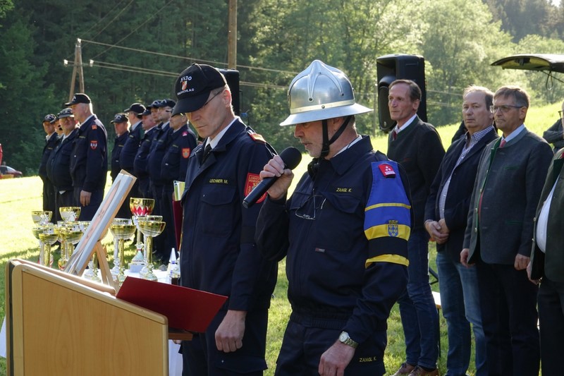 Zur Bewerbseröffnung konnte Abschnittskommandant-Stellvertreter ABI Michael Lechner den Bürgermeister Josef Freiler, Ortsvorsteher Albin Konlechner, Abschnittskommandant ABI Josef Weber, die 2 Bewerterteams unter Bewerbsleiter OBM Karl Zangl.