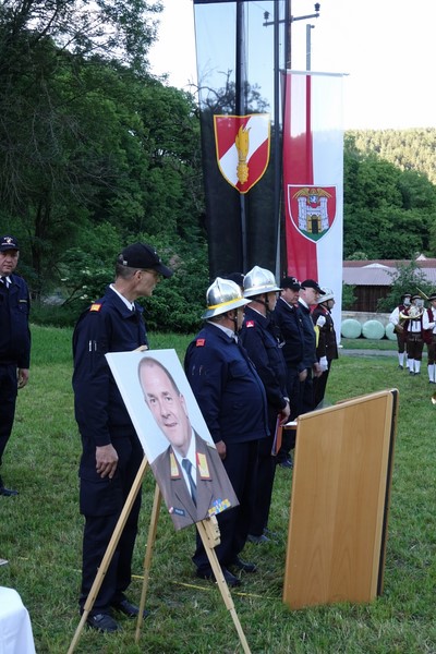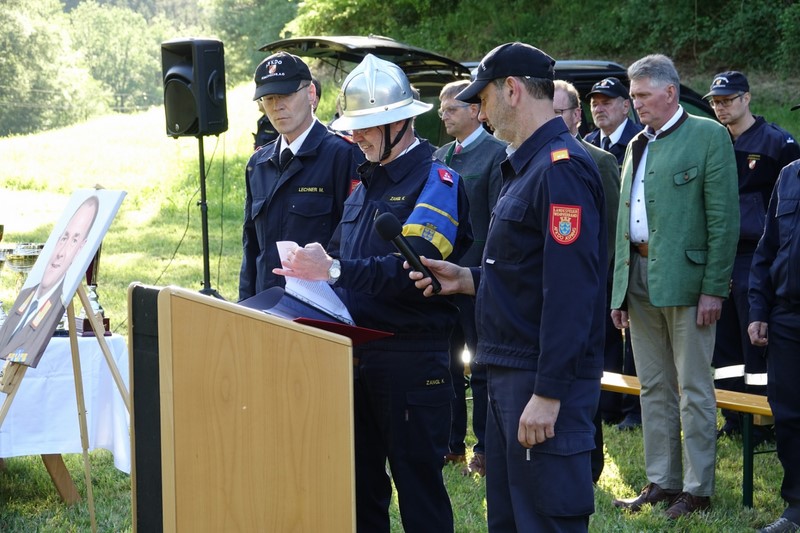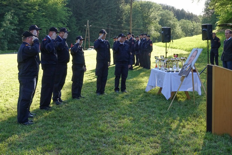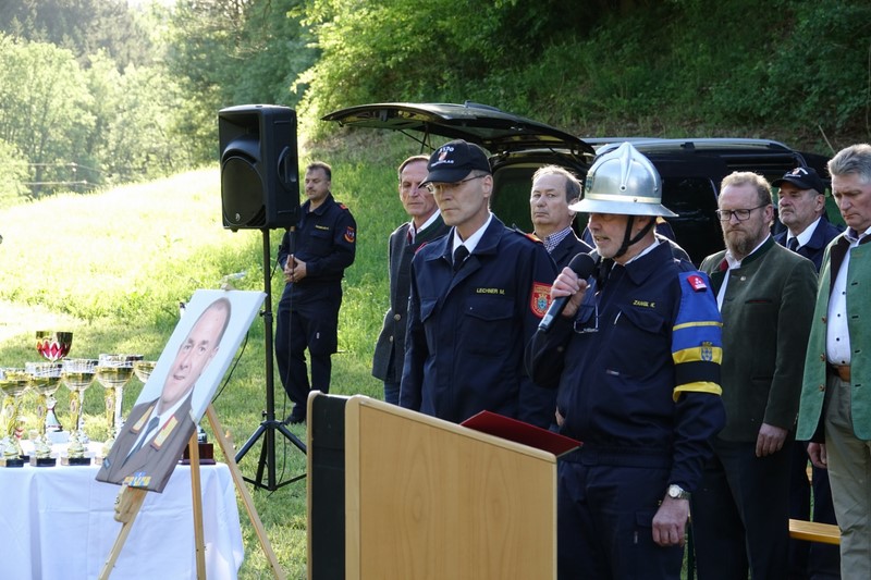 Zu Beginn der Siegerehrung stand ein gedenken an den verstorbenen Abschnittskommandant Bernhard Pichler, der diesen Abschnittsbewerb initiiert hatte und zu einem großen Teil organisierte. OBM Zangl wurde ein Rückblick vorgelesen und von der Stadtkapelle Kirchschlag ein „Ich hatt‘ einen Kameraden“ intoniert.