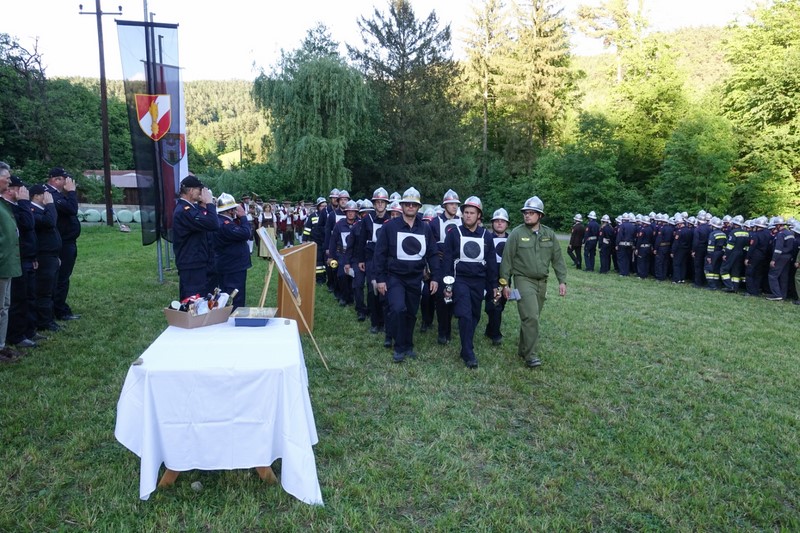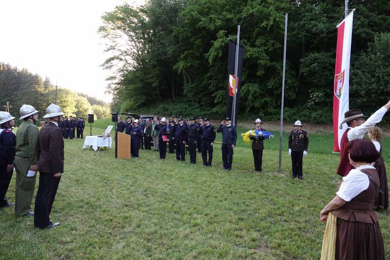 Dieser durfte auch den Abschluss des Abschnittsbewerbes mit Fahneneinholung, Landeshymne und Vorbeimarsch kommandieren.
