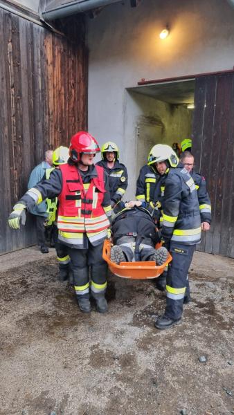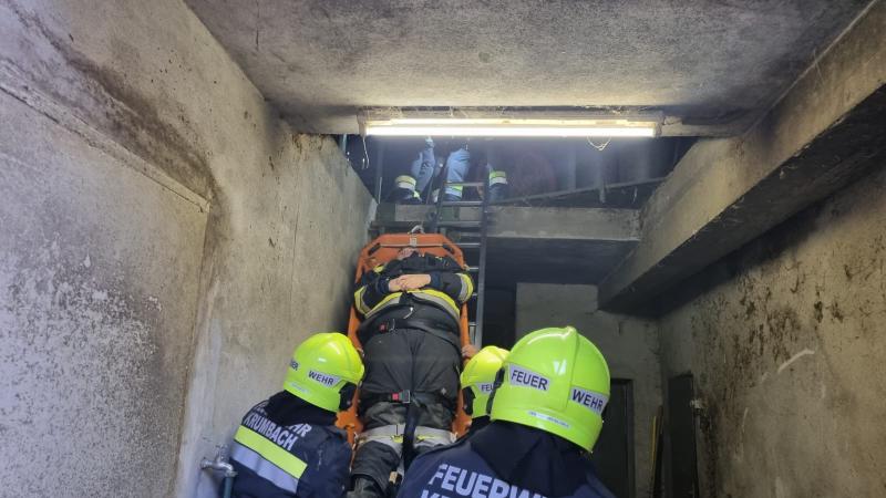 Als eine besondere Herausforderung stellt sich für die 15 Mitglieder die Personenrettung aus einem Hackschnitzelbunker heraus.