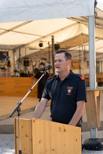 Zur Fahrzeugsegnung und Bieranstich konnte Kommandant Jürgen Simon zahlreiche Gäste und Feuerwehrmitglieder umliegender Feuerwehren begrüßen.