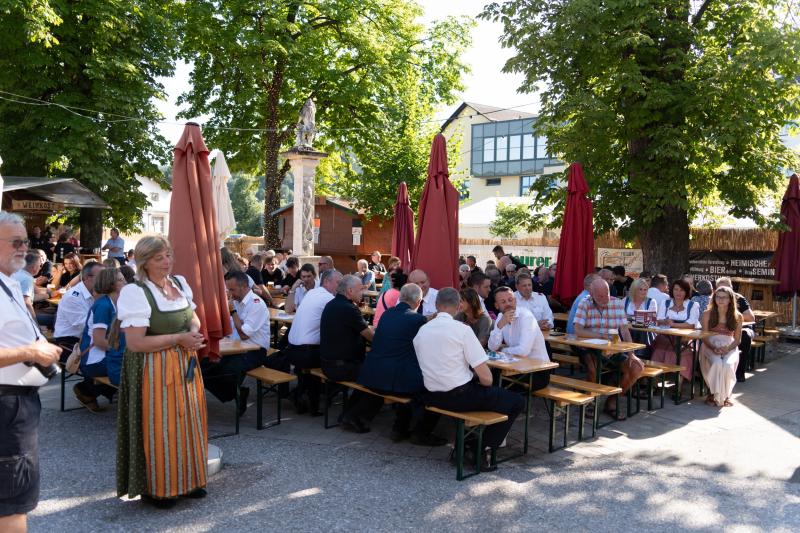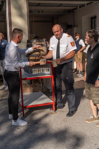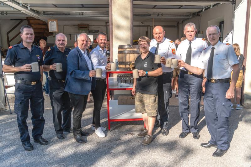 Zum Abschluss gab es den Bieranstich durch BGM Stacherl und Bezirkskommandant Greiner.