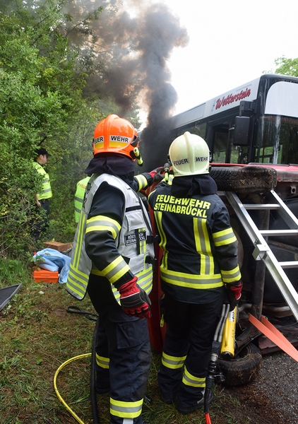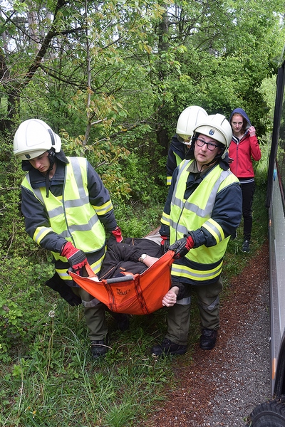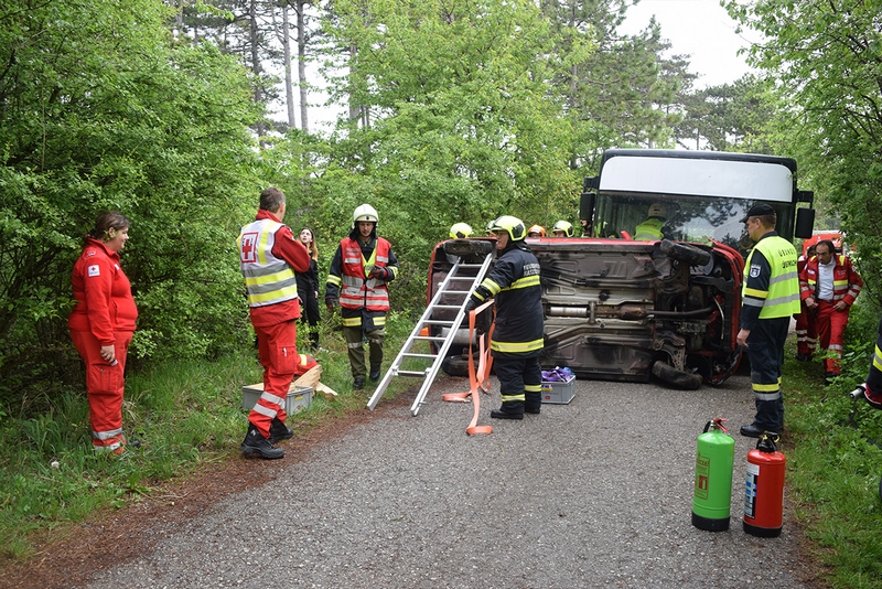 Im Rahmen der Landesaustellung 2019 kam es bei der Zufahrt einer Reisegruppe zu einem Verkehrsunfall beim Pecherpfad in Hölles. Der Reisebus kollidierte mit einem entgegenkommenden PKW. Rund 15 Personen mit unterschiedlichen Verletzungen waren zu retten und zu betreuen.
