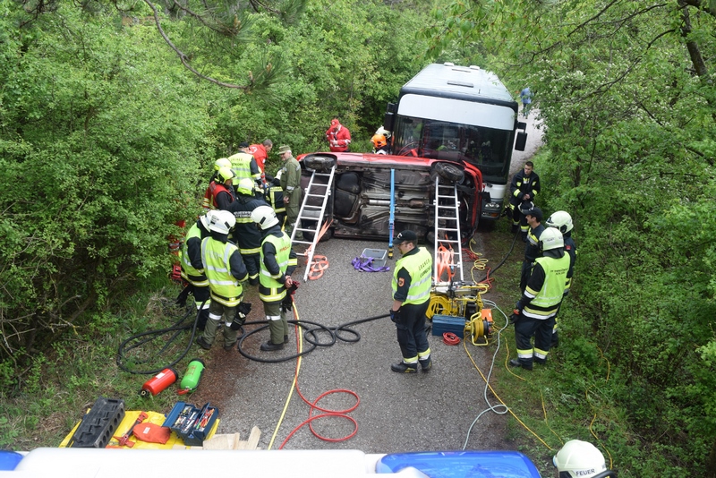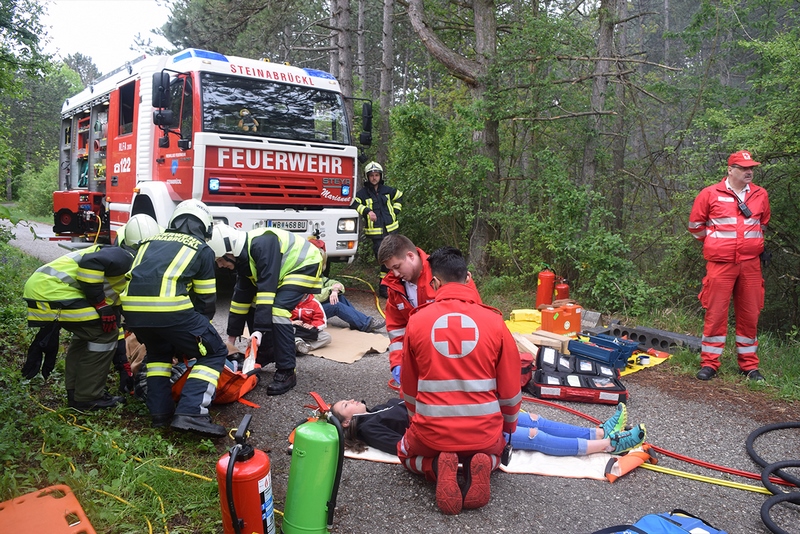 Die Übungsleitung des Roten Kreuzes war mit einem Fahrzeug und 3 Beobachtern vor Ort.